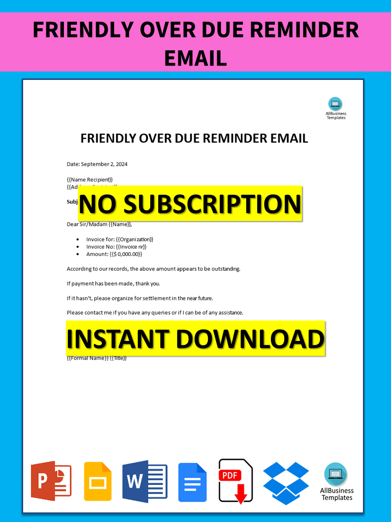 How to write a gentle overdue reminder email? Do you want an example of a friendly late payment reminder email? Utilize this to keep an eye on late payments and remind clients in time. Also, it permits easy personalization such that you may customize the message according to the taste of the individuals concerned.