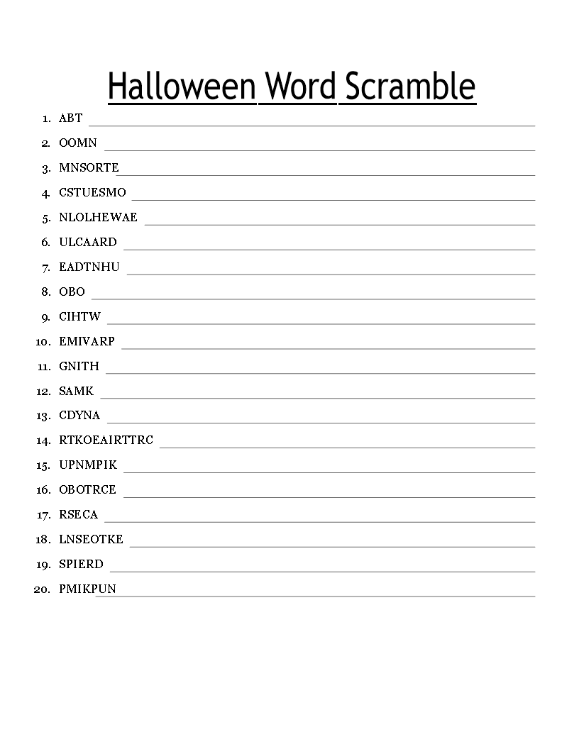 This Halloween Word Scramble is printable and guarantees lots of fun for the whole family. Don't let our Halloween Templates section scare you! Those are often freely available for you. Using our Halloween templates, documents, forms guarantee you will save time, cost, and effort!