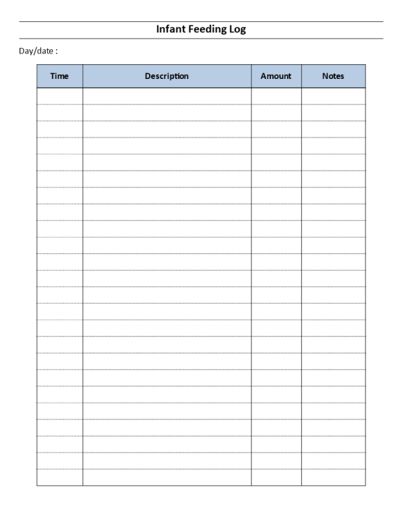 View templateDownload this Feeding Log for Infant template and after downloading you can change and customize every detail and appearance and finish it in minutes.
