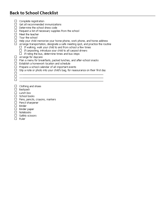 View templateDo your children have to go school and you like to be prepared for this? Download our free Back to School checklist now! Download this easy to use Back to School checklist and be prepared.