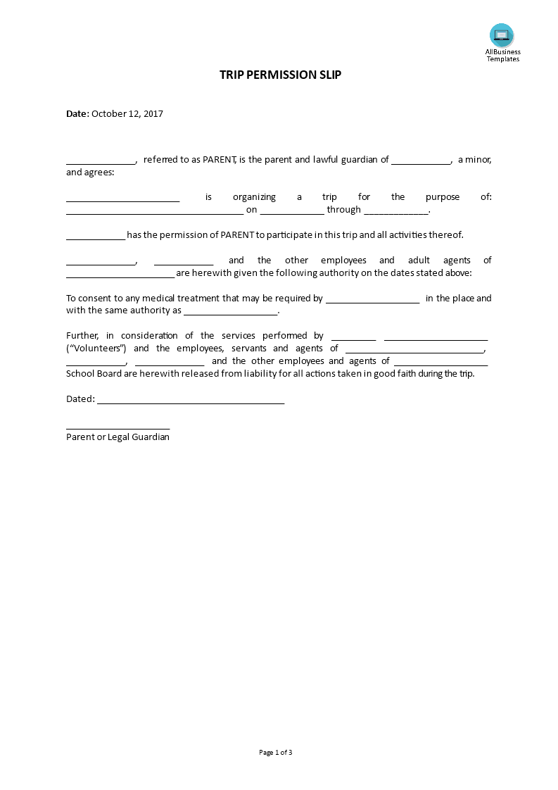business. Using our ready to use and easy to modify Trip Permission Slip brings you an extra motivation and inspiration, and gives